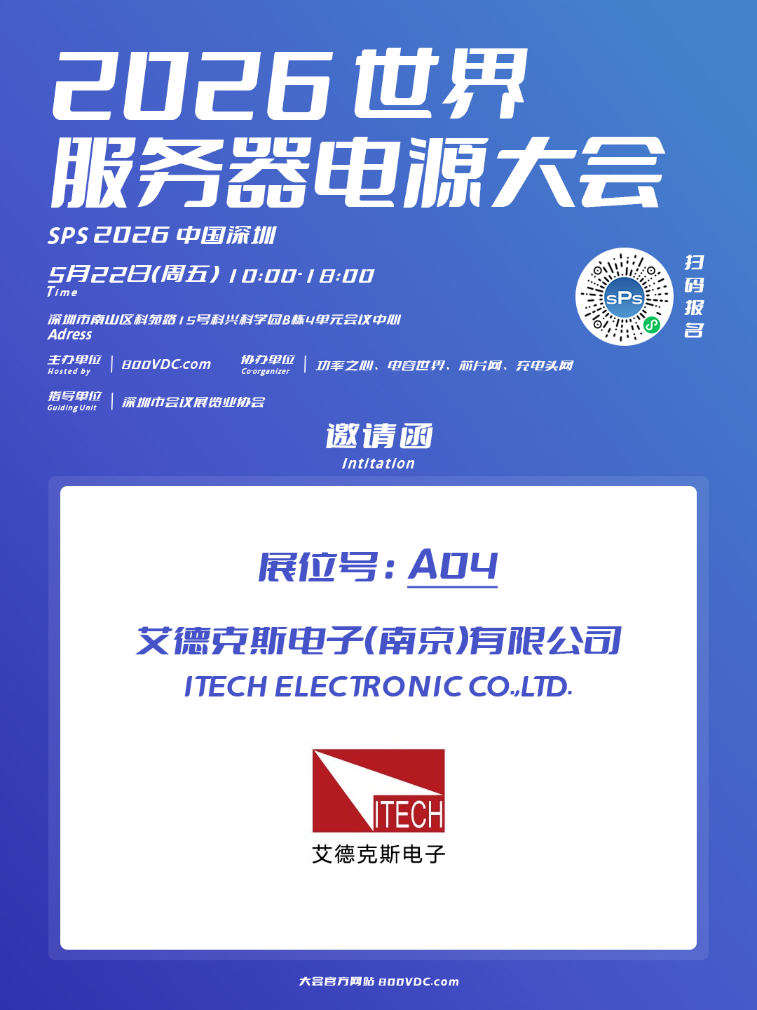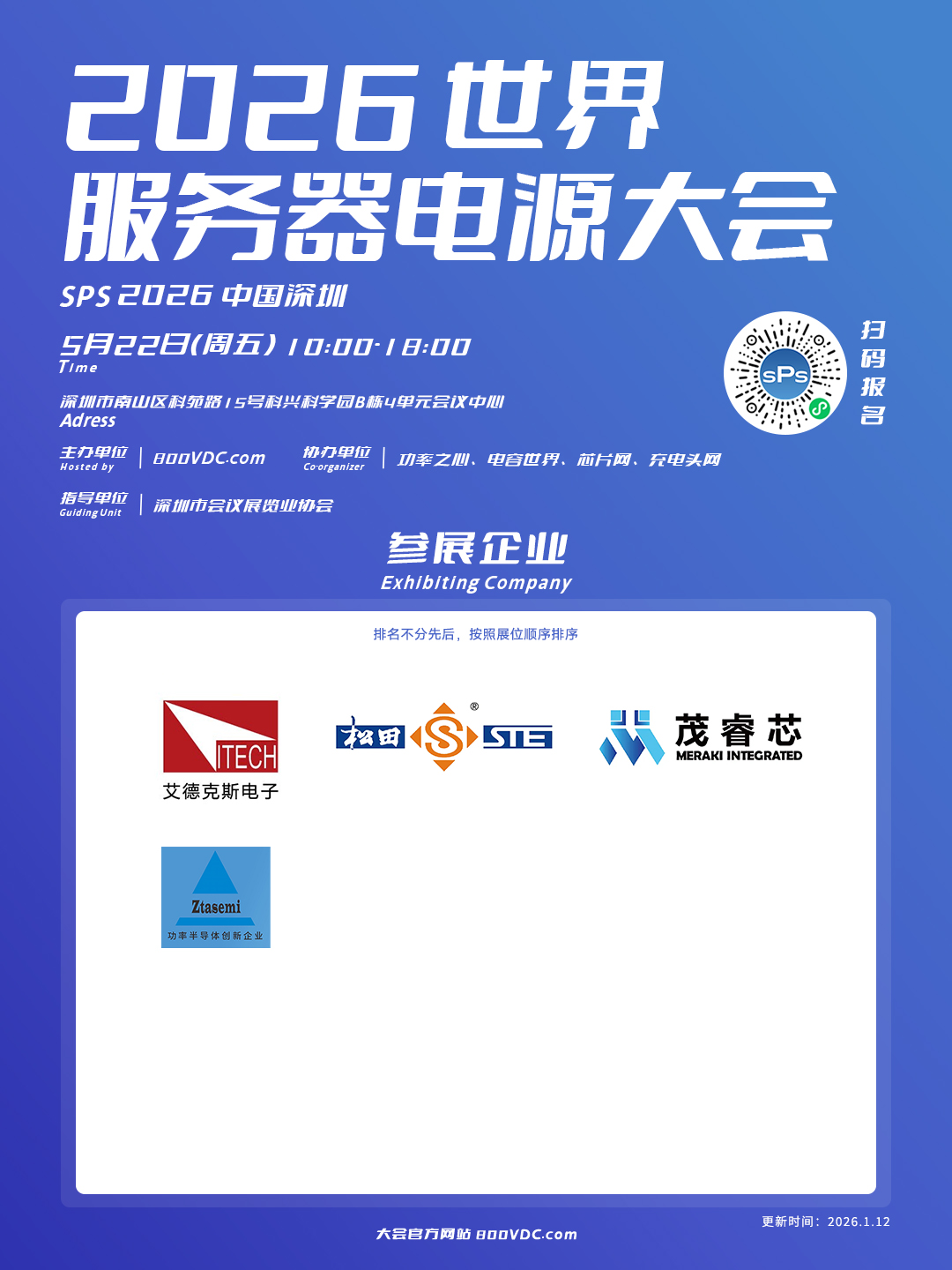 由800VDC.COM主办的 2026 世界服务器电源大会已进入开展倒计时140天,将于 5 月 22 日(周五)在深圳市南山区科苑路 15 号科兴科学园 B 栋 4 单元会议中心举办。全球服务器电源产业链从业者齐聚深圳,探讨绿色算力供电技术革新与全产业链协作新方向。本次大会共开放16个演讲席位和10个展位。其中,演讲企业已全部招募完毕,展位正火热招募中。