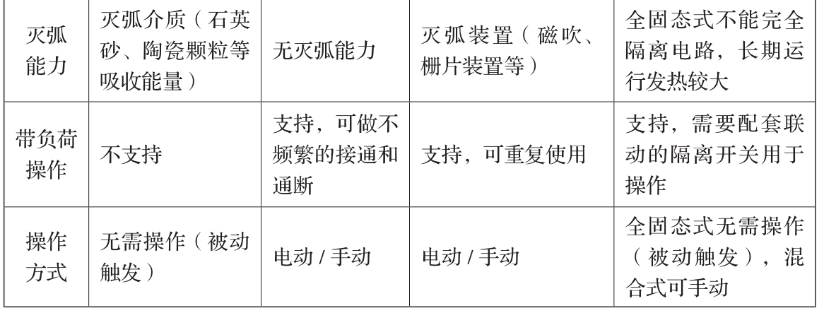 不同直流保护器件特性对比如下: