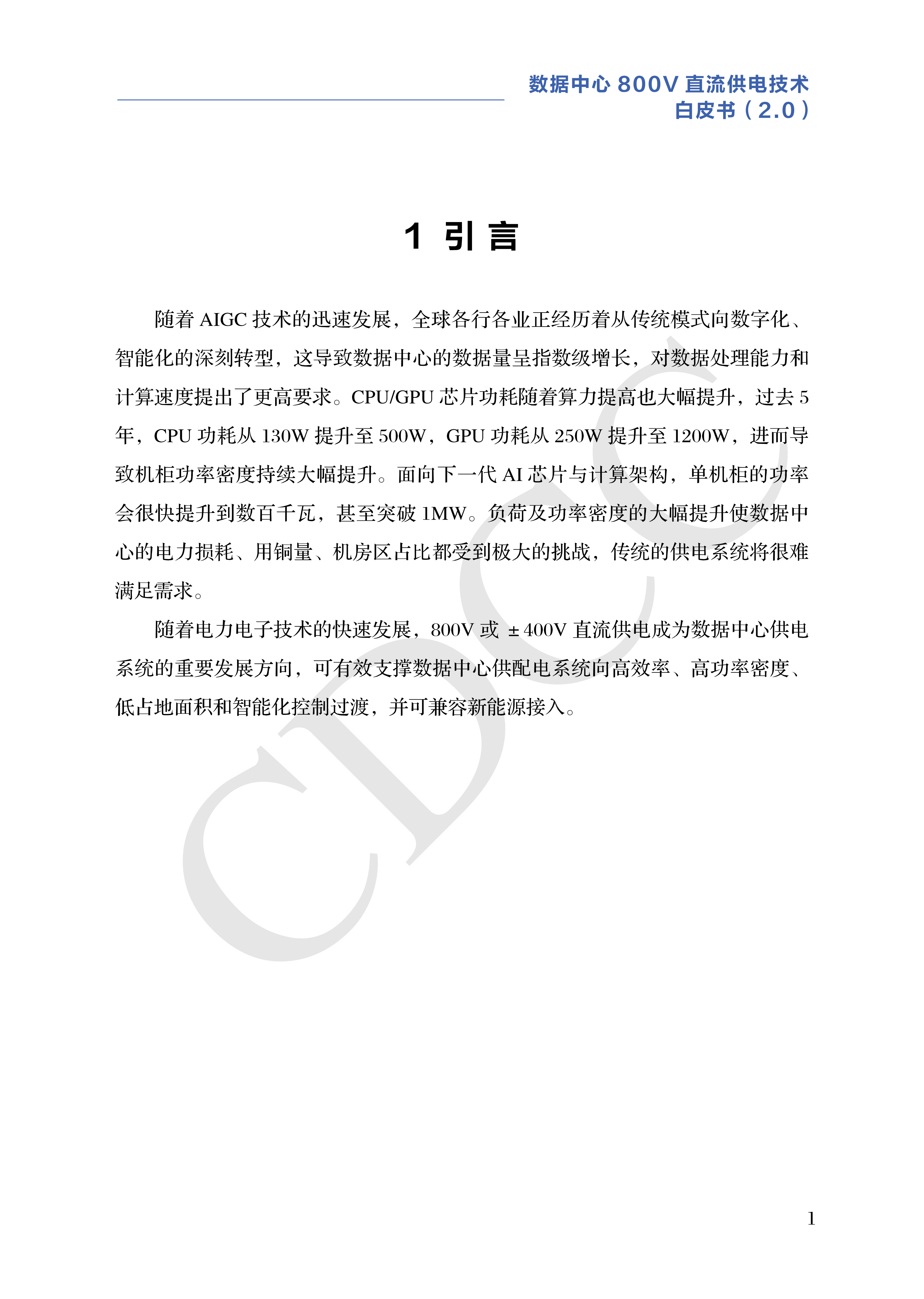 以下是《数据中心800V直流供电技术白皮书(2.0)》详细内容。